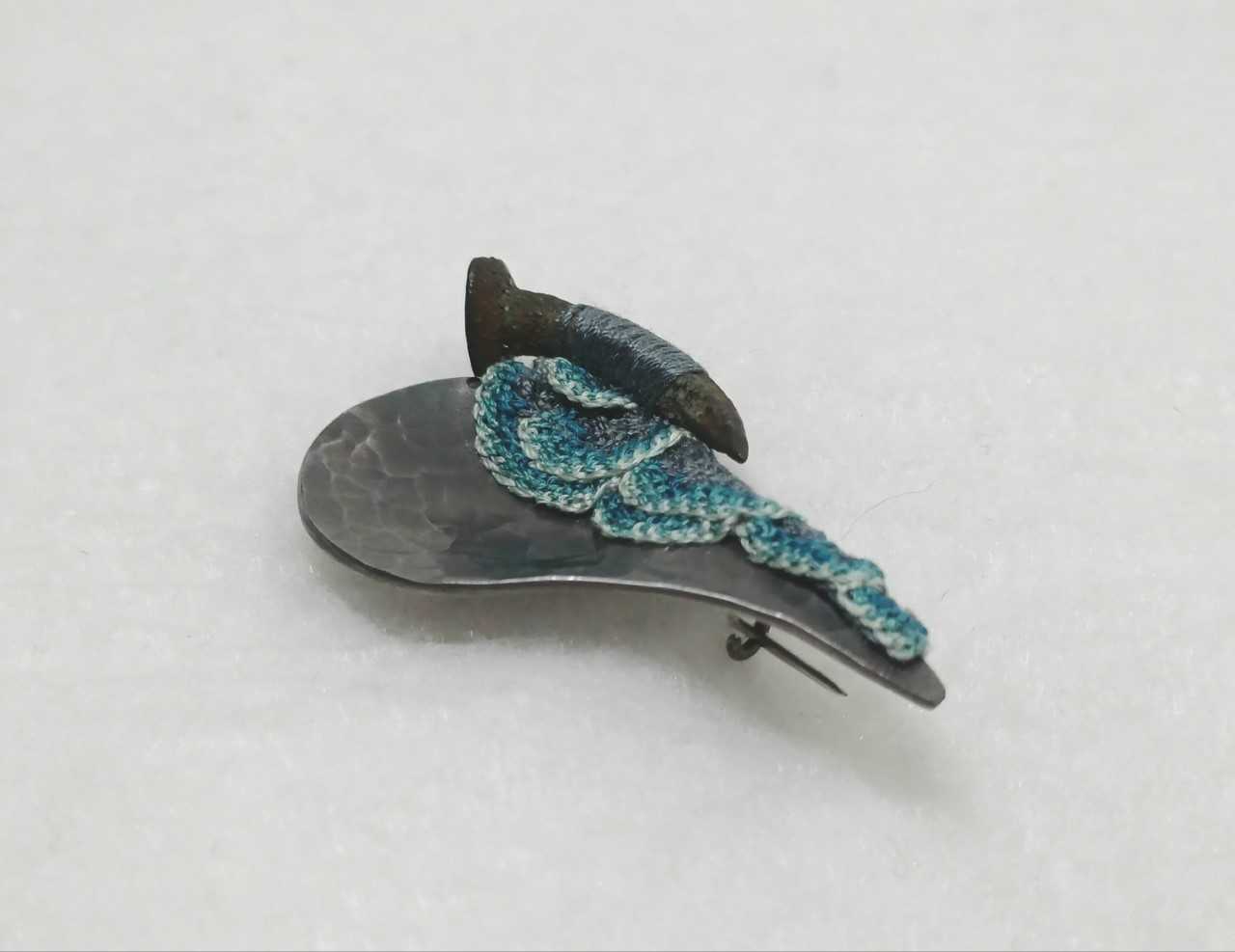 The nails I use for brooches were handmade several hundred years ago before mechanisation, & come from mudlarking finds along the River Thames. They were used for boat building & for housing, although most of the nails I use come from an area that used to be used for ship breaking - who knows where these nails have been & what they've seen! The shape they are & their patina is how they're found, I form the silver shape, then handstitch the two together with silk threads. Brooches can be commissioned in a variety of shapes & colours if prefered.