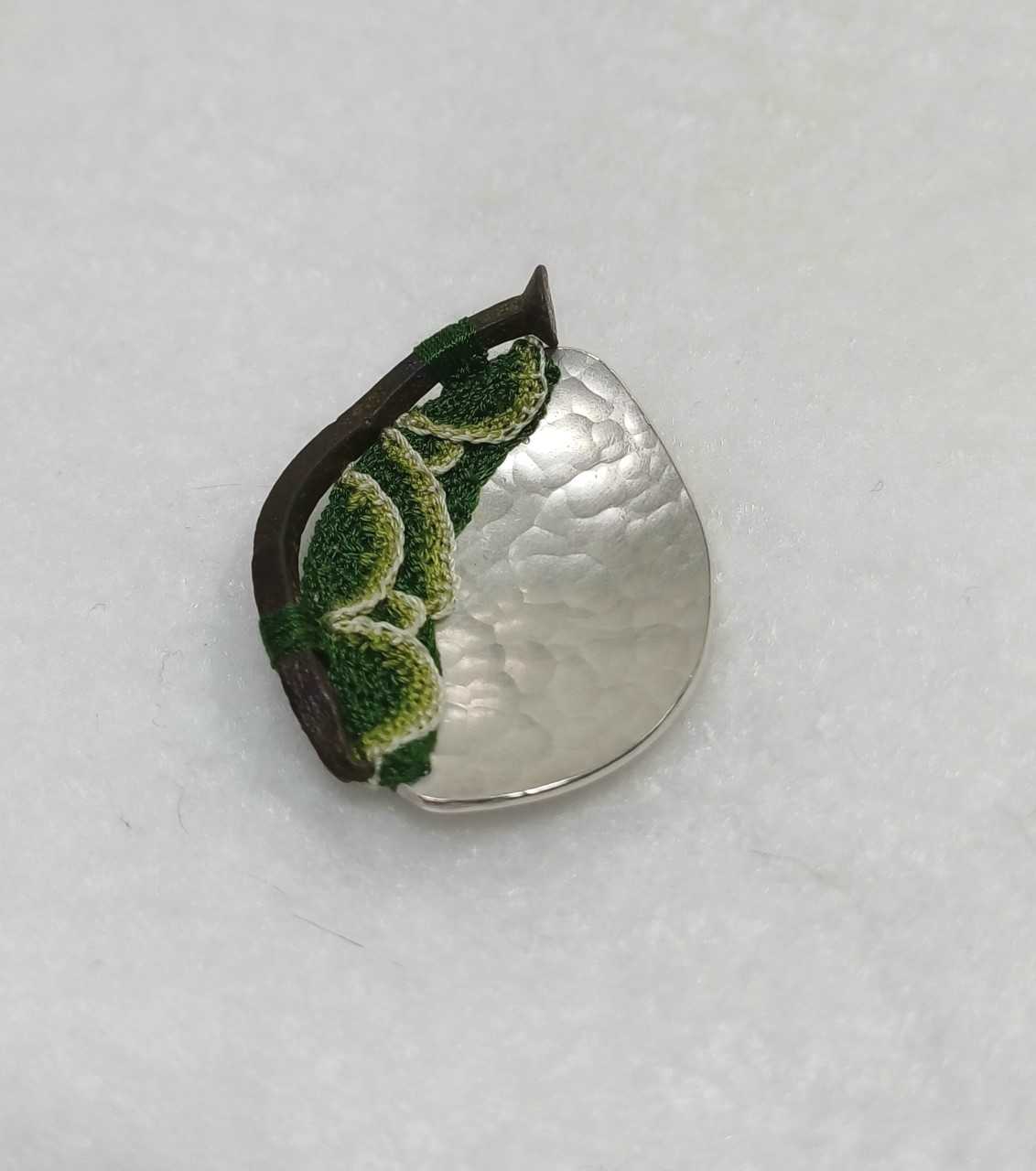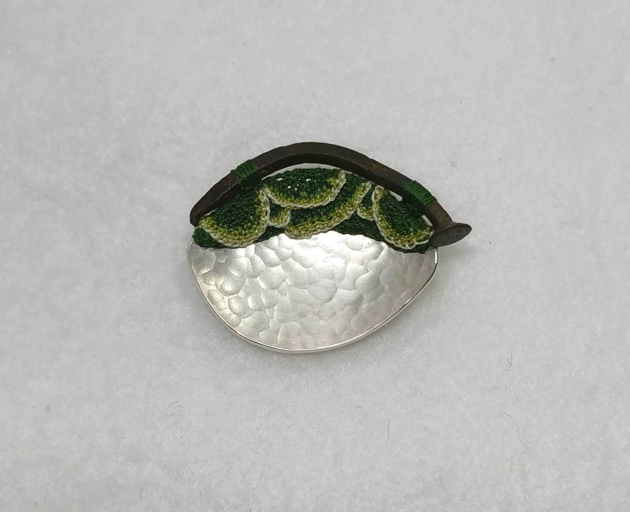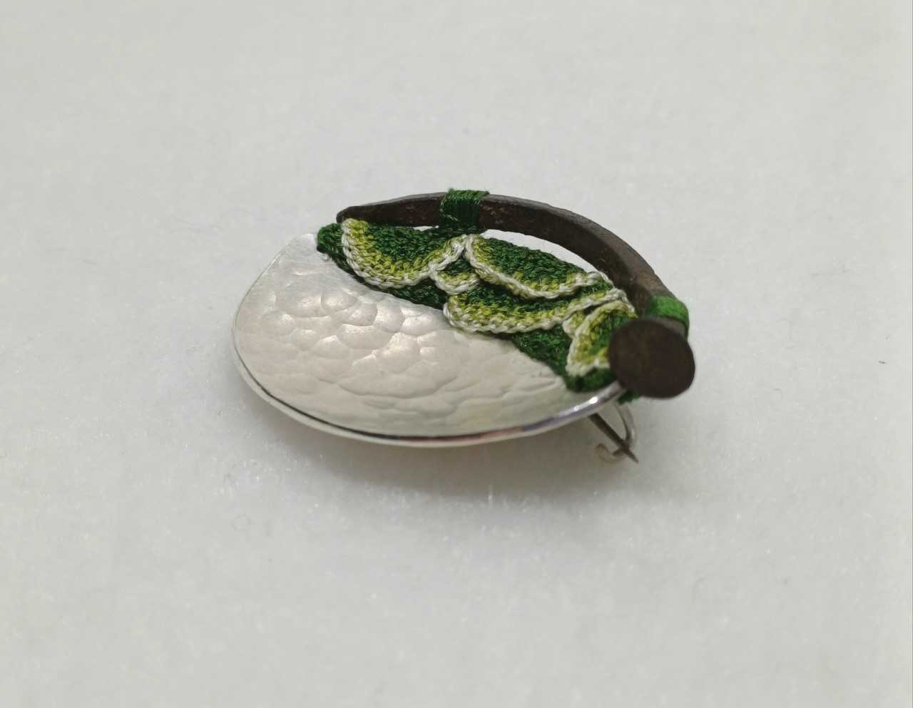 The nails I use for brooches were handmade several hundred years ago before mechanisation, & come from mudlarking finds along the River Thames. They were used for boat building & for housing, although most of the nails I use come from an area that used to be used for ship breaking - who knows where these nails have been & what they've seen! The shape they are & their patina is how they're found, I form the silver shape, then handstitch the two together with silk threads. Brooches can be commissioned in a variety of shapes & colours if prefered.