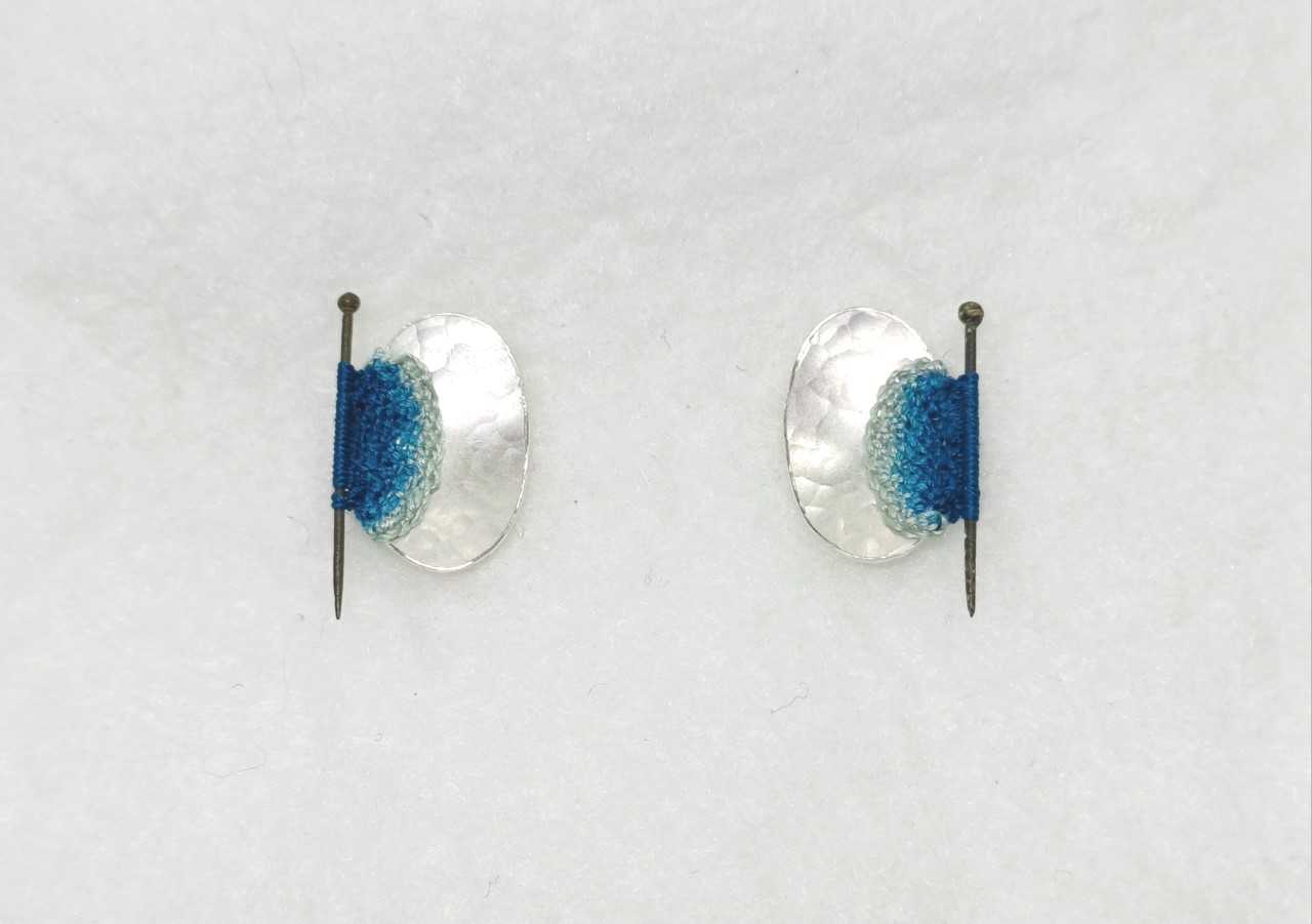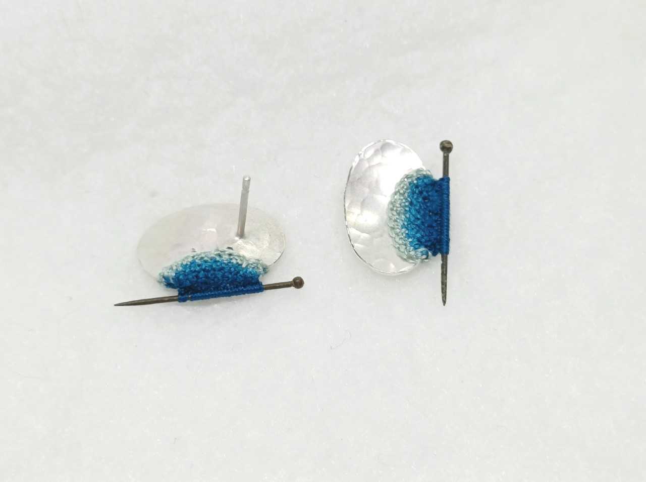These little silver earrings incorporate tiny pins found when mudlarking on the Thames foreshore. They were handmade a few hundred years ago & would've been used to keep clothing on & to attach accessories. I hand stitch them to the silver earrings with silk threads in the colours reflecting the city the river runs through, & in making them wearable again add another layer to their history. If you would like a similar style in a different colour please feel free to get in touch.