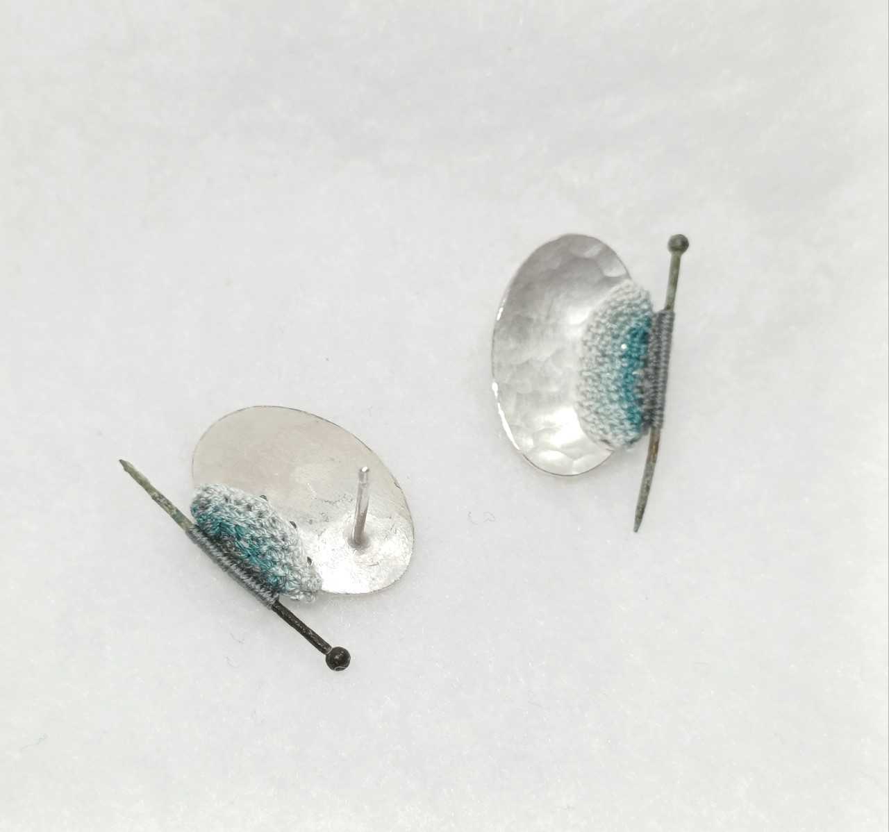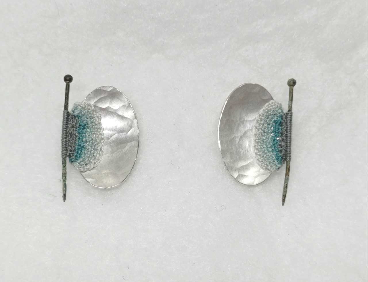 These little silver earrings incorporate tiny pins found when mudlarking on the Thames foreshore. They were handmade a few hundred years ago & would've been used to keep clothing on & to attach accessories. I hand stitch them to the silver earrings with silk threads in the colours reflecting the city the river runs through, & in making them wearable again add another layer to their history. If you would like a similar style in a different colour please feel free to get in touch.